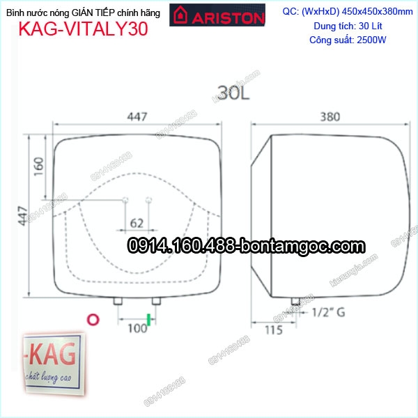 Bình nước nóng gián tiếp 30 lít Ariston chính hãng KAG-VITALY30 Thanh đốt bằng đồng bền vượt trội ,Lớp cách nhiệt mật độ cao giữ nước nóng trong thời gian dài,ELCB và Bộ ổn định nhiệt điện tử cho bồn tắm,vòi nước gia đình,khách sạn chiết khấu cao KIẾN AN GIA-0914160488.Xem clip sản phẩm TẠI ĐÂY