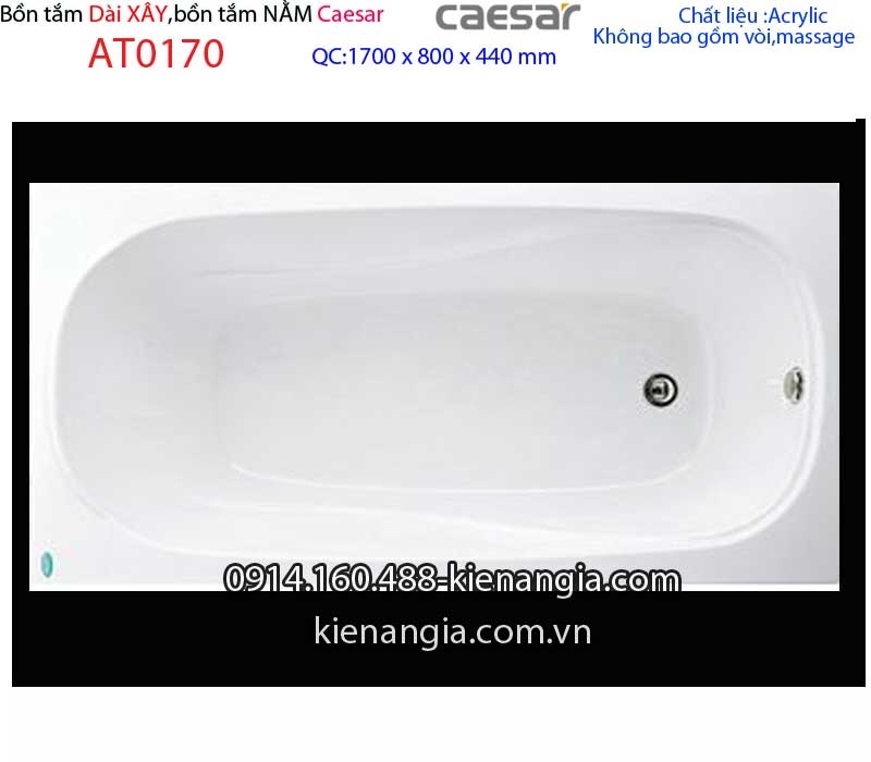 Bồn tắm xây dài 17 mét Caesar-AT0170bồn tắm Caesar xâybồn nằm Caesar xây gạchbồn tắm dài xâyốp gạch giá rẻchắc chắnchính hãng chiết khấu cao KIẾN AN GIA-0914.160.488.Bồn tắm Caesar chất liệu acrylic trắng sángbền đẹp thích hợp cho phòng tắm nhỏtrung bìnhphòng tắm lớn khách sạngia đìnhnhà phốcăn hộresort....Bạn cần chú ý lắp đặt theo hướng dẫn.Một số mẫu bồn tắm có chiều bộ xả.Nếu không chắc chắnbạn nên chụp hình vị trí dự kiến lắp và liên hệ phòng kinh doanh KIẾN AN GIA để tư vấn cụ thể hơn