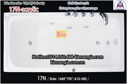Bồn xây Việt Mỹ acrylic dài 17m cho resort 17N chính hãng chiết khấu cao KIẾN AN GIA.Bồn xây Việt Mỹ giá rẻ cho khách sạncăn hộresortbiệt thựvilla vì có thể trang trí bồn xây bằng gạch mossaicgạch Kỹ thuật số mang phong cách riêng tại kienangia.com.vn.Bồn xây acrylicbồn nằm xây phủ thuỷ tinh bóngBồn xây galaxy Việt Mỹ lấp lánh dưới ánh đèn ....nhiều qui cáchđa dạng kiểu dángkích thước tại 0914.160.488.Kết hợp cùng combo TBVS TOTOAmericanCottoAppolloImex nhập khẩu đẳng cấp hơn với giá khuyến mãi hấp dẫn tại 0914.160.488