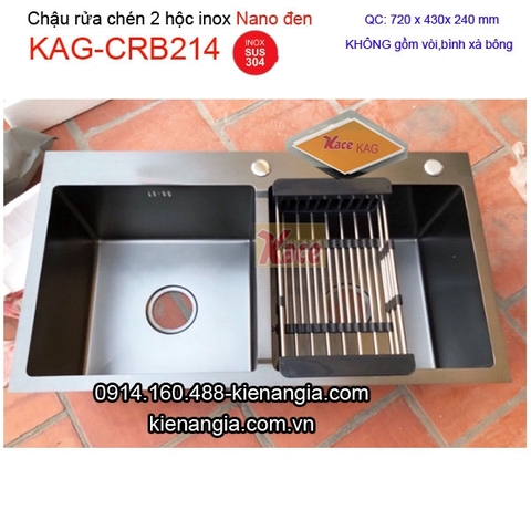 Chậu Nano đen 2 hộc đều 72x43 cm inox 304 KAG-CRB214,Chậu INOX SUS304 phủ NaNo kháng khuẩn cực cao có tác dụng hỗ trợ tốt trong việc bảo vệ sức khỏe ,Tính năng chống trầy xước hiệu quả.Chống trầy xước tốt giúp người nội trợ có thể sử dụng thoải mái mà không lo trầy xước hay bong tróc. Chậu rửa bát luôn sáng bóng, độ bền cao.Bộ xả thoát nhanh,chống hôi tốt.Đẹp,thẩm mỹ ,nhiều mẫu mã ,nhiều kích thước CHẬU NANO đen,Nano vàng,Nano xám bạc Grey ..giá tốt KIẾN AN GIA-0914.160.488.Xem Clip bộ sưu tập Chậu cao cấp TẠI ĐÂY