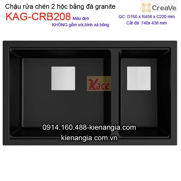 Chậu rửa chén âm bàn đá granite 2 hộc 76x45cm Creave KAG-CRB208,Chậu rửa chén bằng đá granite Độ bền sử dụng và tuổi thọ của chậu khá cao,khó trầy xước,Không bám dầu mỡ, chỉ cần dùng giẻ sạch lau nhẹ nhàng là đã có thể vệ sinh chậu luôn như mới.Không thấm nước.Bạn có thể chọn loại chậu 1 hộc,chậi 1 hộc có cánh ,2 hộc hay 2 hộc có cánh có kích thước phù hợp.Chiết khấu cao,giá rẻ tại KIẾN AN GIA-0914.160.488XEM CLIP bộ sưu tập Chậu ÂM BÀN ĐÁ TẠI ĐÂY