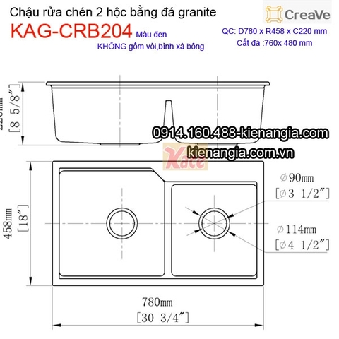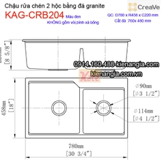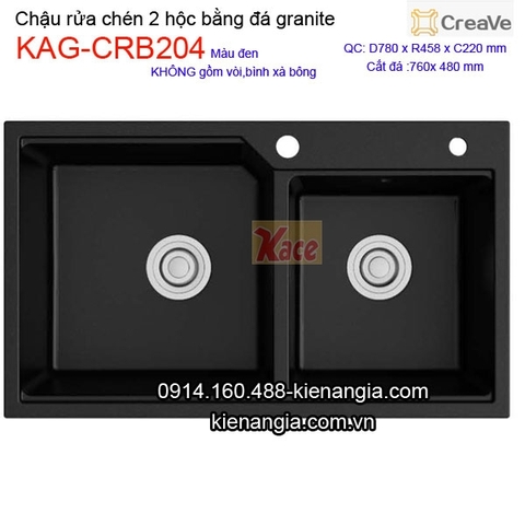 Chậu rửa chén đá granite 2 hộc 78x45cm Creave KAG-CRB204,Chậu rửa chén bằng đá granite Độ bền sử dụng và tuổi thọ của chậu khá cao,khó trầy xước,Không bám dầu mỡ, chỉ cần dùng giẻ sạch lau nhẹ nhàng là đã có thể vệ sinh chậu luôn như mới.Không thấm nước.Bạn có thể chọn loại chậu 1 hộc,chậi 1 hộc có cánh ,2 hộc hay 2 hộc có cánh có kích thước phù hợp.Chiết khấu cao,giá rẻ tại KIẾN AN GIA-0914.160.488