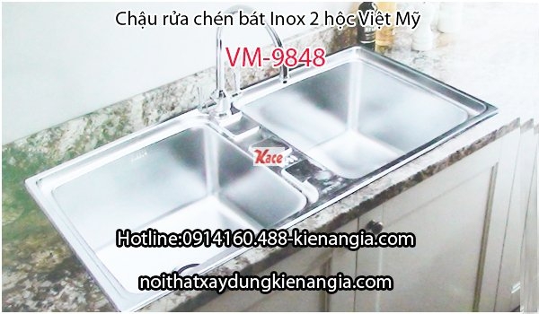 Chậu rửa chén SUS 304 2 hộc 98x48x23cm Việt Mỹ VM-9848