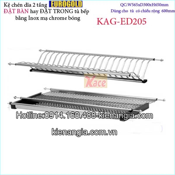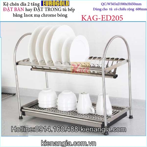 Kệ chén dĩa 2 tầng đặt bàn 600 EUROGOLD KAG-ED205,Kệ chén bát bằng inox sáng bóng có thể đặt trong tủ bếp,có khay hứng nước rất sạch sẽ tiện lợi cho gia đình.Mẫu mã đẹp,sang trọng,giá tốt KIẾN AN GIA-0914.160.488