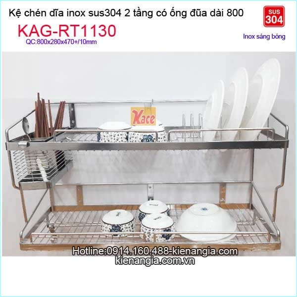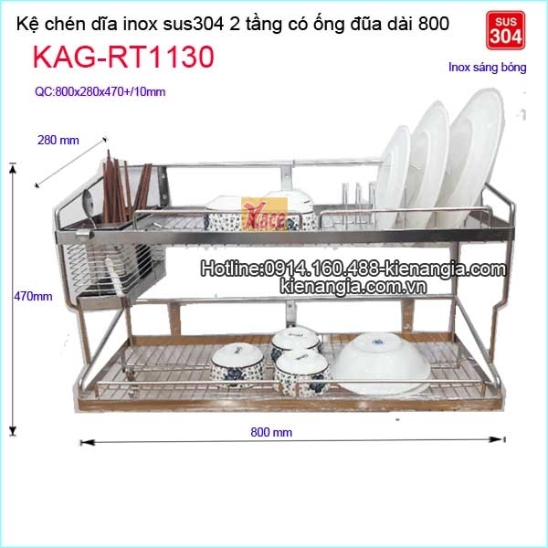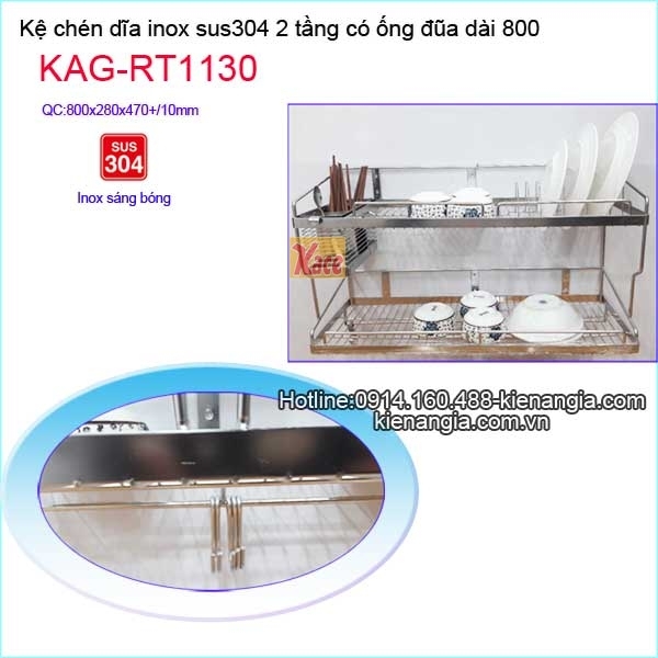 Kệ chén dĩa muỗng đũa inox sus304 2 tầng dài 8 tấc KAG-RT1130,kệ đa năng,kệ có rổ muỗng đĩa..,rổ ráo trên chậu rửa ionox giá rẻ KIẾN AN GIA.Kệ dùng cho gia đình,lắp trên chậu rửa chén để nước từ rổ ráo không văng ra ngoài .Kệ làm bằng inox sus304 không gỉ sét ,loại treo tường ,thuận lợi cho gia đình,nhà phố hay căn hộ chung cư có vị trí lắp.Bạn có thể chọn kệ 2 tầng chiều dài 600,700,800 hay kệ 1 tầng 60,70,80.Nếu không lắp trên chậu,dùng loại kệ có khay .Xem video kệ ráo nước 2 tầng trên chậu rửa TẠI ĐÂY