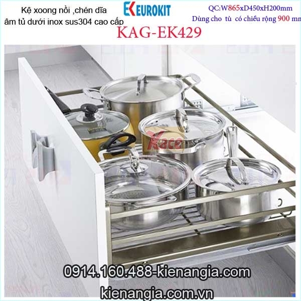 Kệ xoong nồi chén dĩa âm tủ EUROKIT 90cm KAG-EK429,khay chén bát có ray giảm chấn,kệ úp chén dĩa có ray kéo âm tủ bếp dưới bằng inox sus304 cao cấp không gỉ sét cho bếp hiện đại,giá rẻ chiết khấu cao KIẾN AN GIA-0914.160.488
