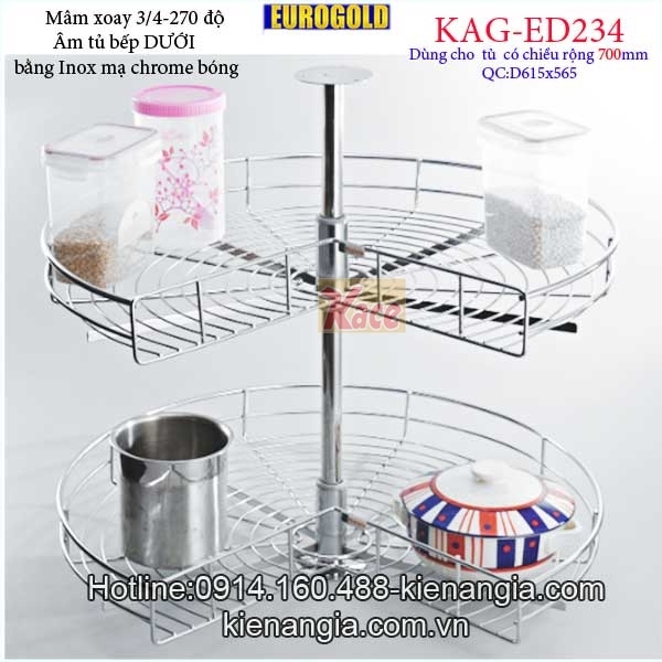 Mâm xoay 270 độ tủ D700,mâm xoay 3 phần 4 tủ bếp EUROGOLD-KAG-ED234,Kệ xoay inox dùng cho tủ bếp góc ,,kệ xoay tủ bếp,mâm xoay 180 độ,kệ xoay đa năng tủ bếp bằng inox có thể đựng nhiều dụng cụ nhà bếp như xoong nồi,chén bát....tận dụng không gian bếp ,hiện đại ,sang trọng cho nhà bếp gia đình nhà phố,căn hộ hay biệt thự,villa .Xem nhiều loại kệ xoay,kệ thẳng tại KIẾN AN GIA-0914.160.488.Bạn cần lưu ý kích thước tủ bếp để chọn kệ phù hợp vì kệ ,mâm xoay sản xuất theo qui cách chuẩn châu ÂU.XEM CLIP SẢN PHẨM THẬT TẠI Đ​ÂY