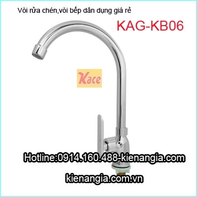 Vòi rửa chén bát dân dụng giá rẻ KAG-KB06 mua tại KIẾN AN GIA.Vòi bếp lạnh rẻ thích hợp cho gia đình,nhà xưởng,văn phòng,nhà cho thuê,phòng trọ,quán ăn.Bạn bên cân nhắc dùng Vòi bếp nhỏ giá rẻ dùng cho chậu 1 hộc,vòi rửa chén lò xo giá rẻ,vòi cần bẻ dùng cho chậu 2 hộc,chậu có hộc rác .Vòi âm tường khá bền nhưng cần thiết kế đường cấp nước phù hợp.Nhiều mẫu mã vòi bếp,vòi rửa chén nóng lạnh tại 0914.160.488