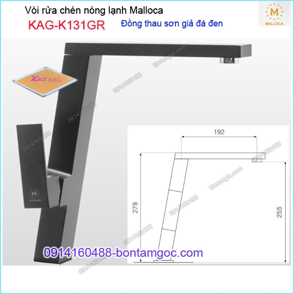 Vòi rửa chén nóng lạnh đồng thau sơn giả đá XÁM Malloca KAG-K131GR,vòi bếp nóng lạnh cao cấp ,hiện đại,sang trọng cho chậu 1 hộc,2 hộc inox hay chậu đá ,chính hãng chiết khấu cao KIẾN AN GIA-0914160488-Bontamgoc.com.xEM CLIP bộ sưu tập vòi Malloca TẠI ĐÂY